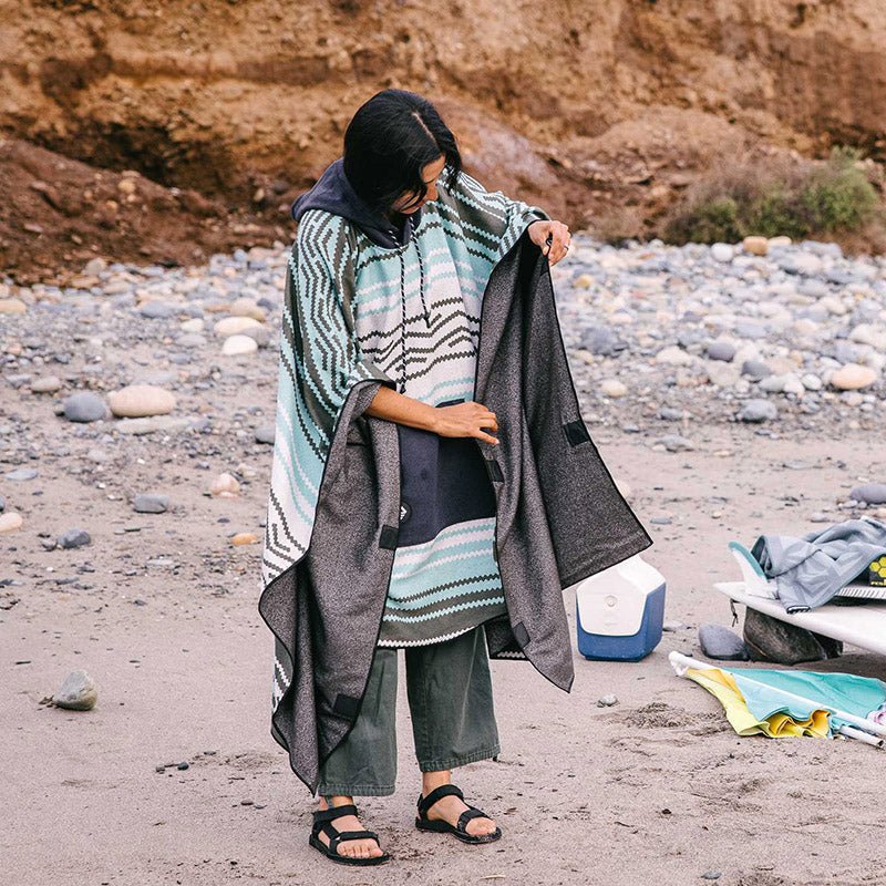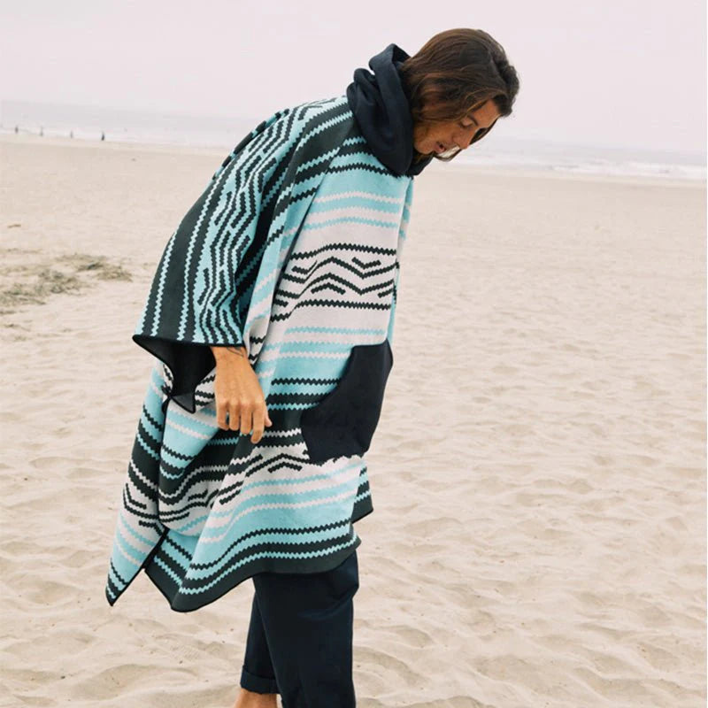Whether you need to change before surfing, or lounge with friends on the beach, this Nomadix Baja Aqua Poncho Towel is a versatile, classic poncho that doubles as a large beach blanket with a hood that doubles as an umbrella hole.