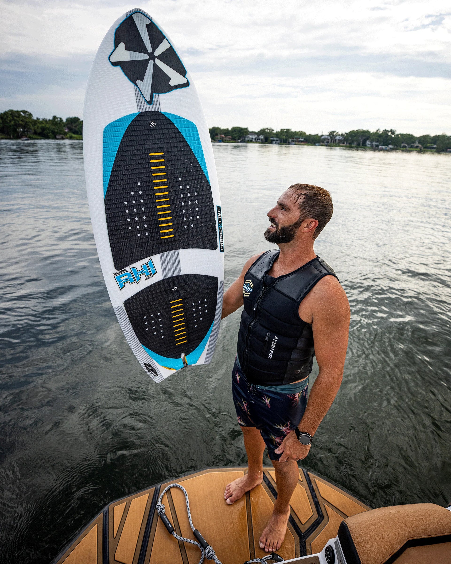 The Phase Five Ahi designed by John Akerman is a complete “ocean” style surfboard that delivers true wakesurf performance. The design features a moon tail shape, wide midsection and a fully rounded pin nose for a perfect blend of handling and performance. The Ahi’s outline delivers more speed and drive down the line while channeling water flow off the tips of its tail for optimal release. The Phase Five Ahi Wakesurfer is glassed with our Flightlite V2™ Pro Select layup for ultimate lightweight performance and is equipped with a quad FCS Fusion fin setup.